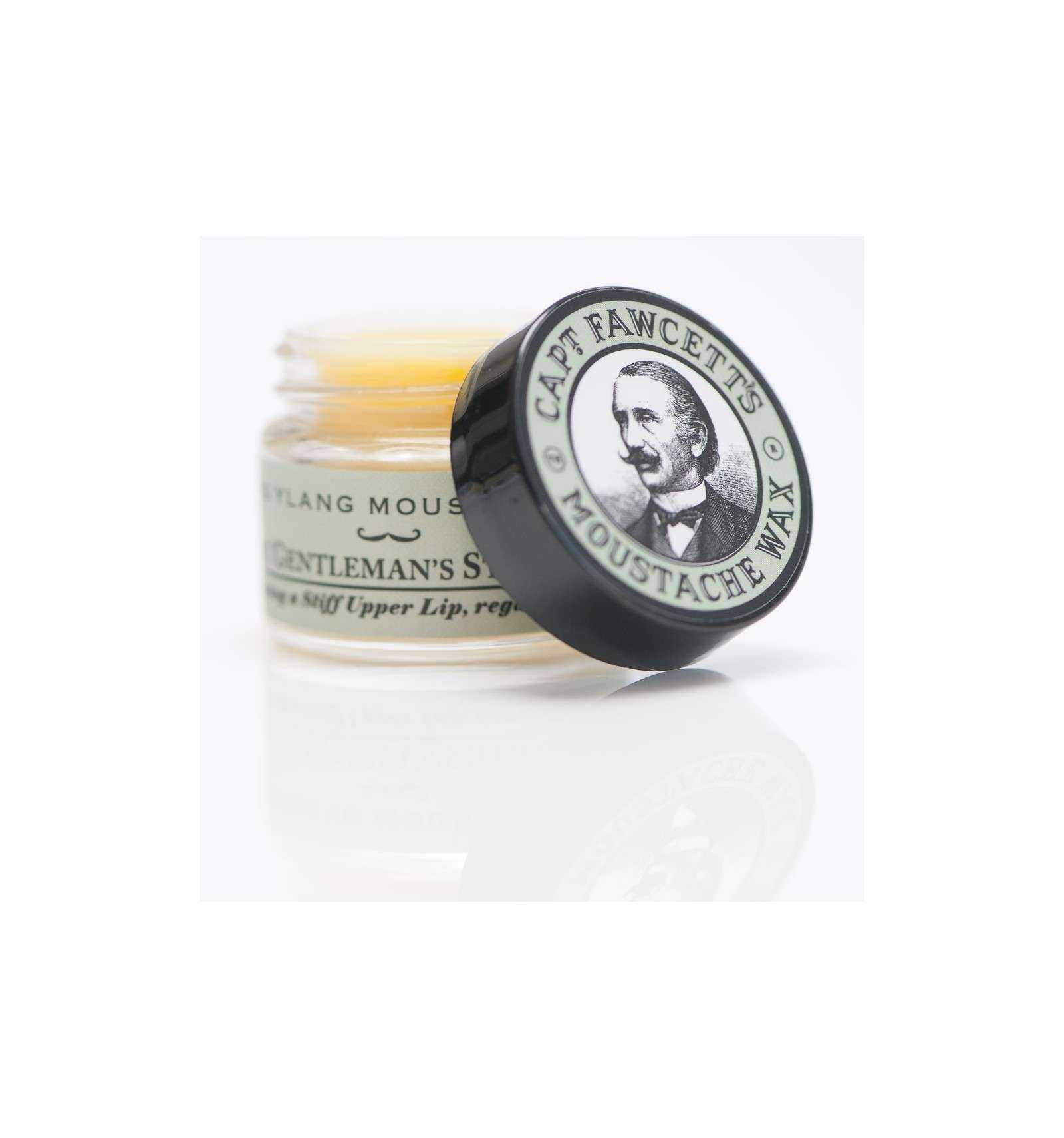 Cera para el cuidado y acabado del bigote de la Marca Captain Fawcett's con aroma a Ylang o flor de cananga, árbol originario de la India. Textura muy compacta que permite no saturar mucho la carga del producto en los dedos, es aconsejable tener el tarro cerca de una fuente de calor antes de su uso (una luz de sobremesa por ejemplo) para poder diluirla con más facilidad.
